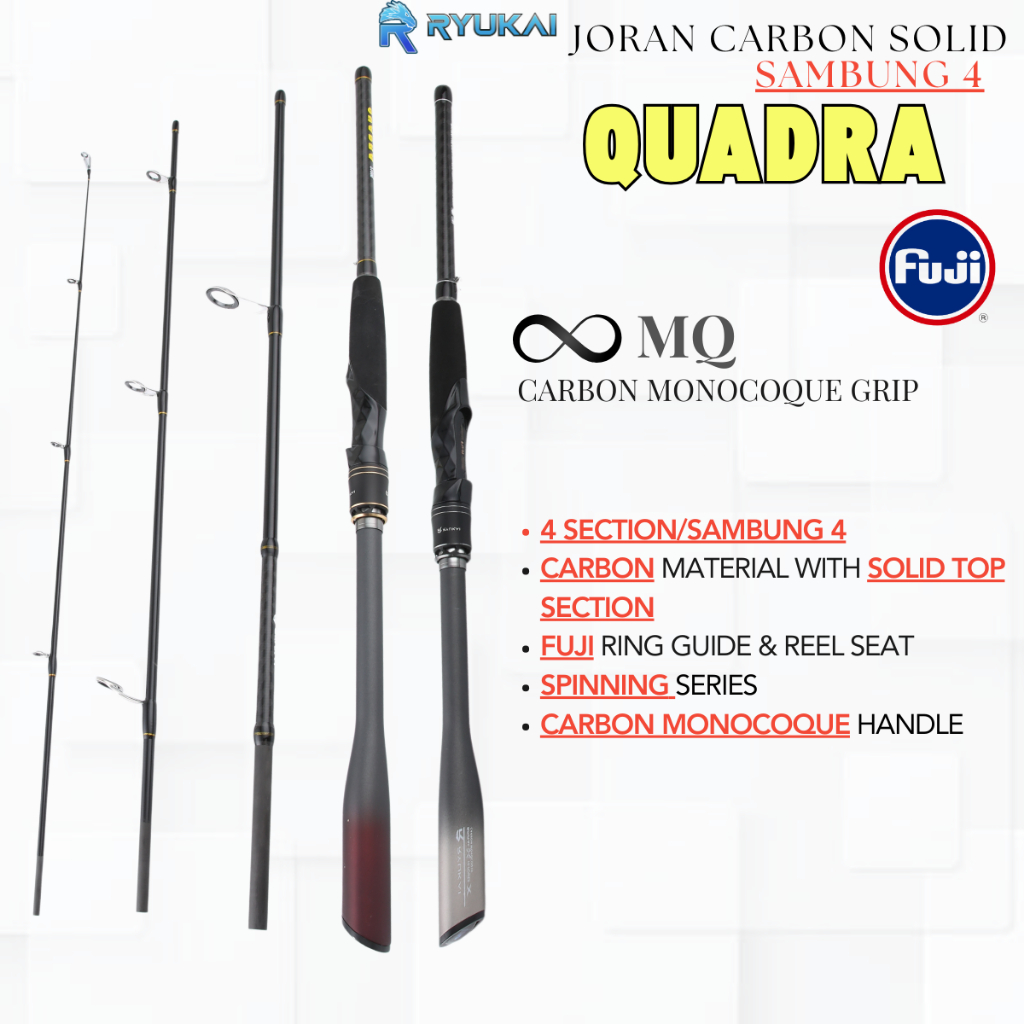 Joran Pancing Carbon Solid Fuji Sambung 4 Portable 8-17 lbs 198 210 cm Ryukai Quadra