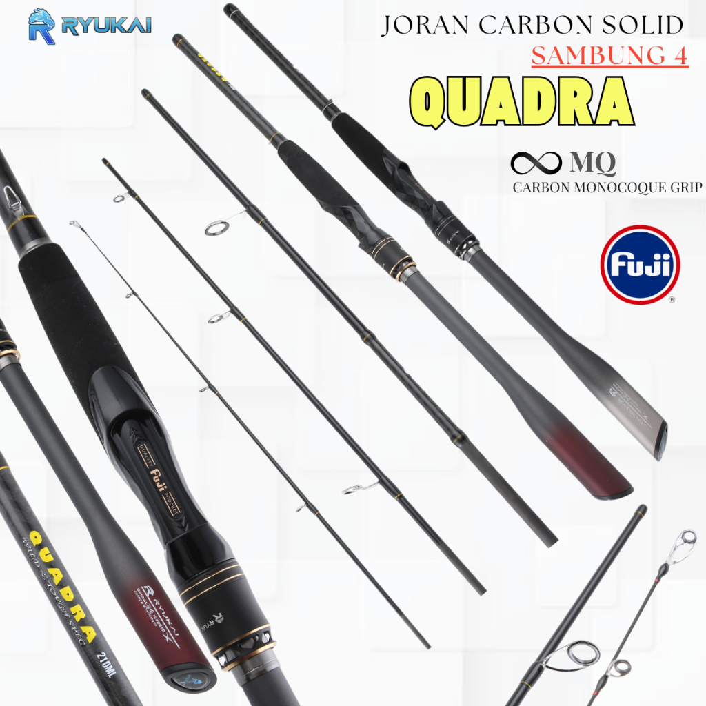 Joran Pancing Carbon Solid Fuji Sambung 4 Portable 8-17 lbs 198 210 cm Ryukai Quadra
