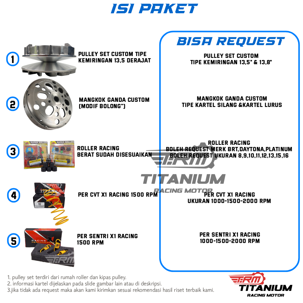 PAKET EXTRA FULL UPGRADE KIRIAN CVT vario pcx adv 125 150 160 old led bolam thailand vietnam indonesia lokal racing - Pulley Set TITANIUM RACING MOTOR