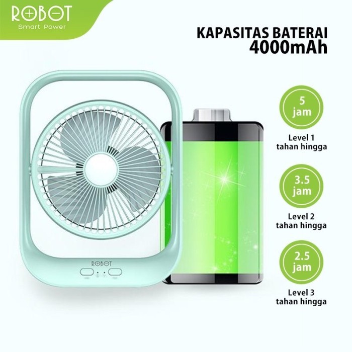 ROBOT Portable Fan 4000mAh Kipas Angin 7" Bisa di Charge RT-BF13