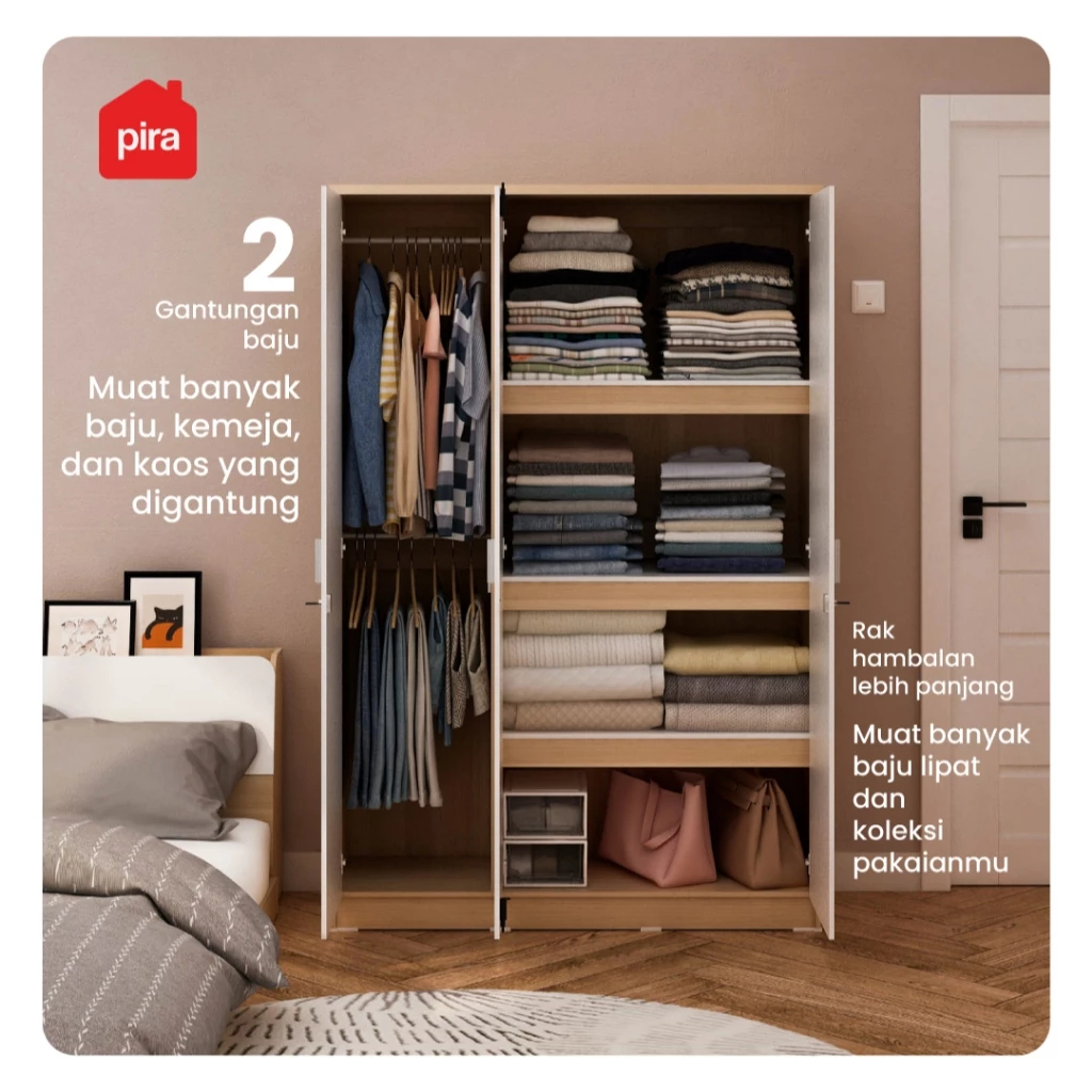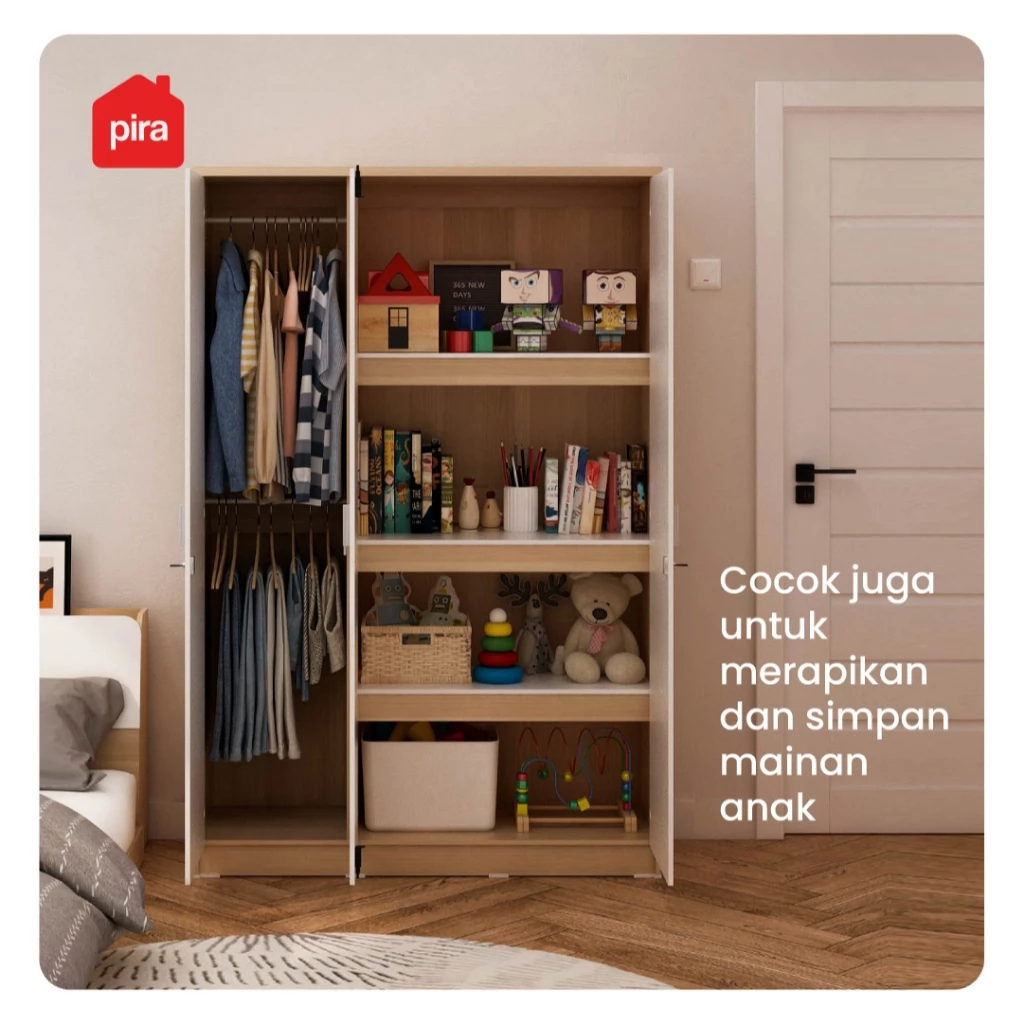 Lemari Pakaian Kayu 3 Pintu Pira Metropolis - Aruna 3PS Medium Full Rak