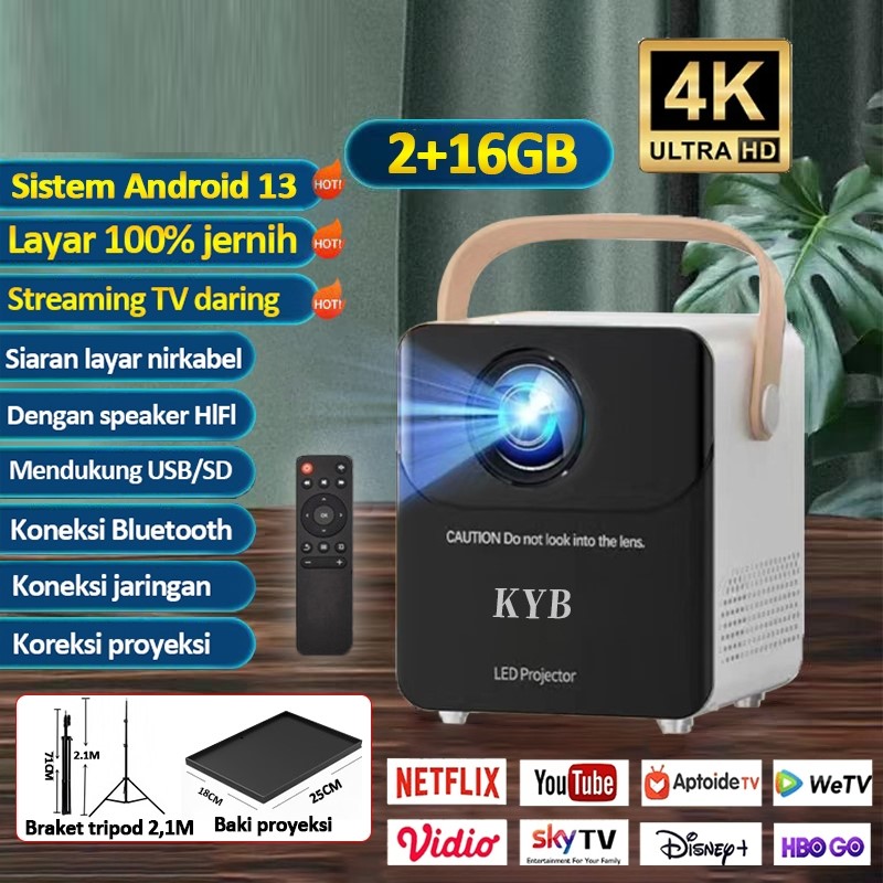 Proyektor Mini Smart Proyektor Android TV 4K HD KYB T2 LED Mini WiFi Mini hy300 epson ebx500 layar tancap smoon xgody hp