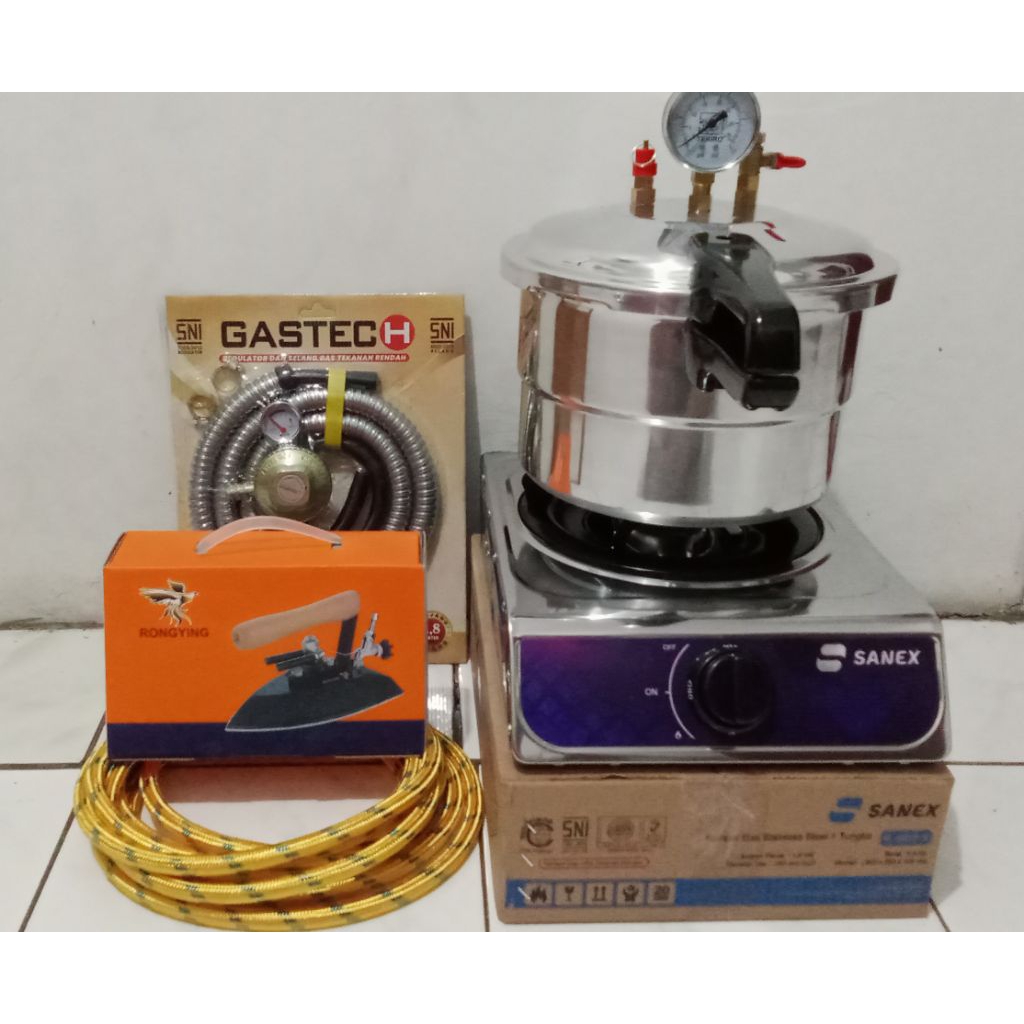 setrika uap panci presto 8 liter paket komplit