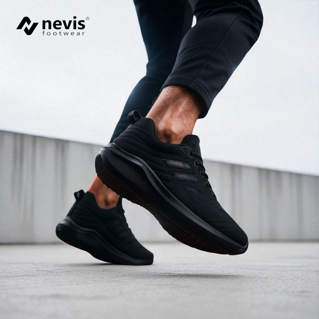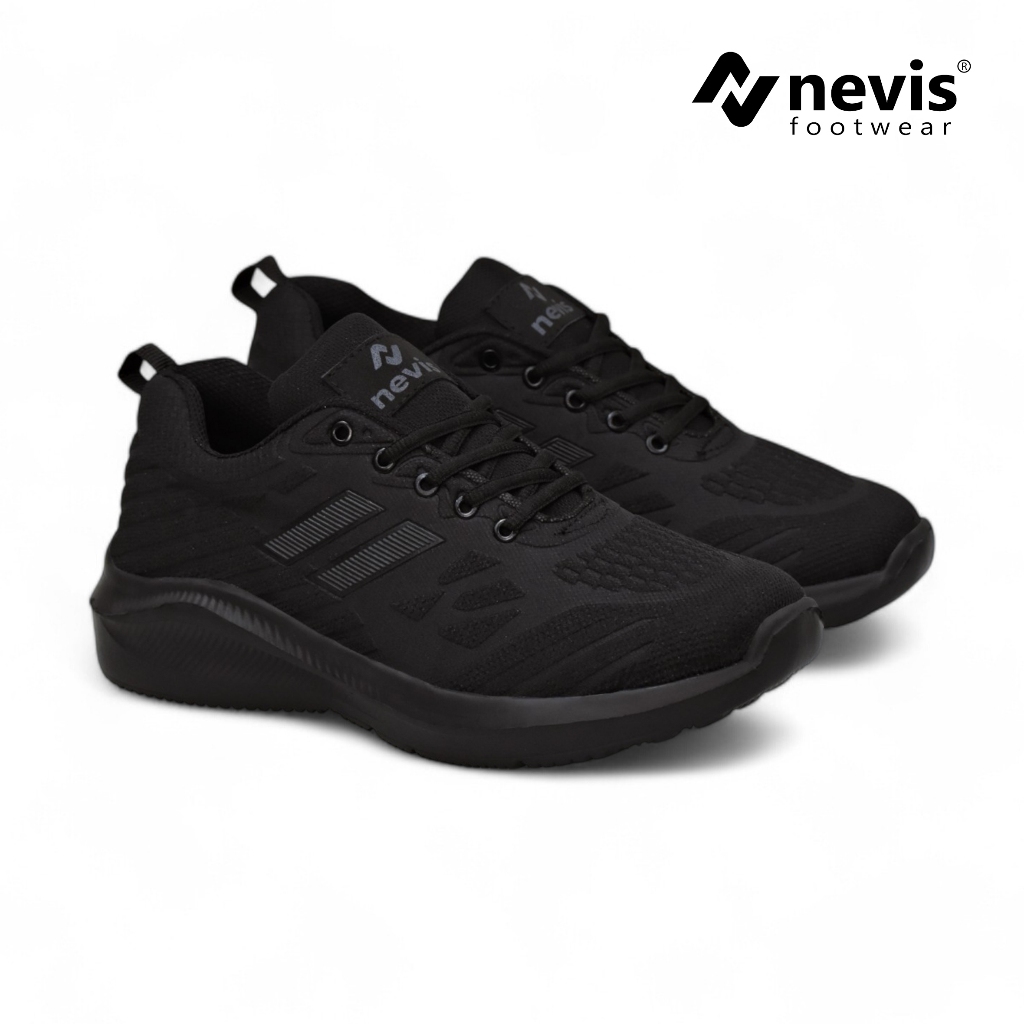 NEVIS Sepatu Pria Jumbo Big Size 39-49 Hugo Cross Sport Sneakers Casual Olahraga Running Lari Full Black Hitam Polos
