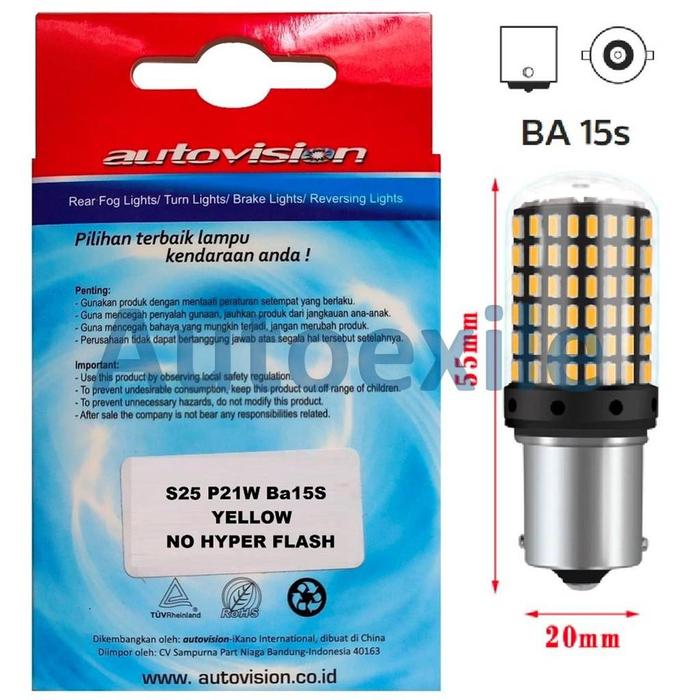 Autovision Microzen LED S25 P21W 1156 Ba15S Kuning Lampu Sein Mobil Kedip Normal No Hyper Flash - P21W BA15s 12V Kuning