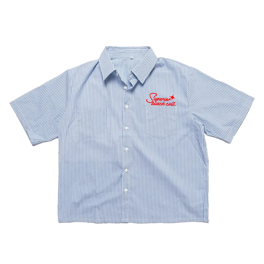 SUPERIOR BLACK CVLT Kemeja Pendek STRIPE BIRU Boxy Fit Crop Skena