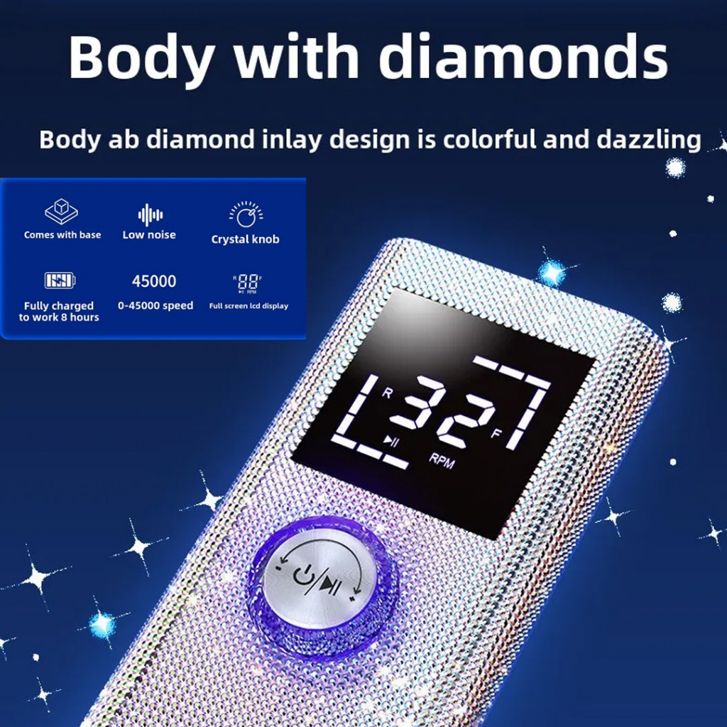 MESIN DRILL BQ-114 Manicure Gel Remover Nail Drill Machine, 50W Full Diamond 45000RPM Portable Rechargeable Nail Drill -