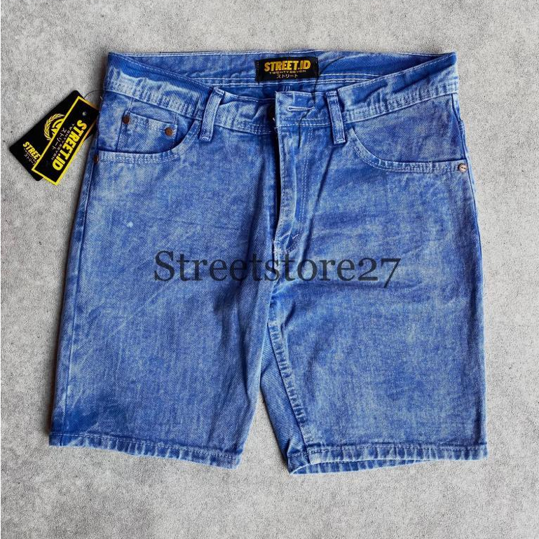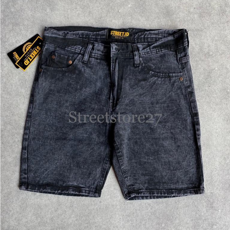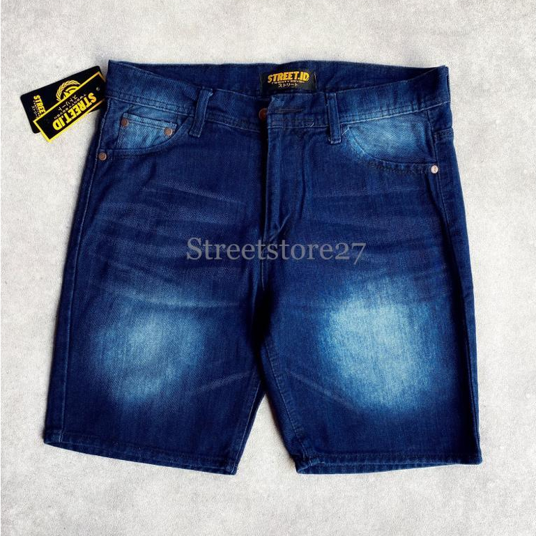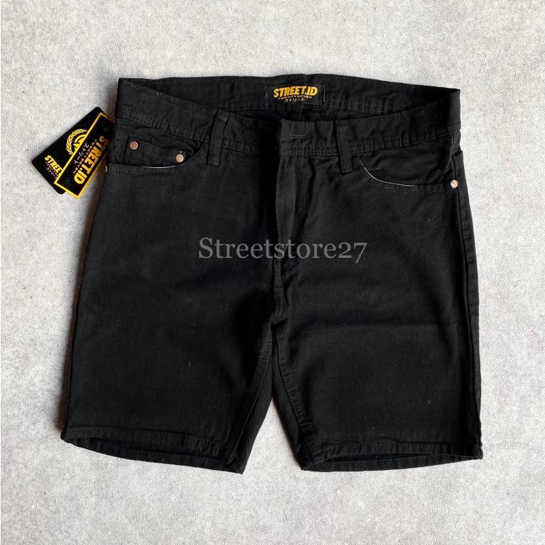 Celana pendek pria jeans polos non stretch tidak melar bahan tebal di atas lutut uk 27 - 38