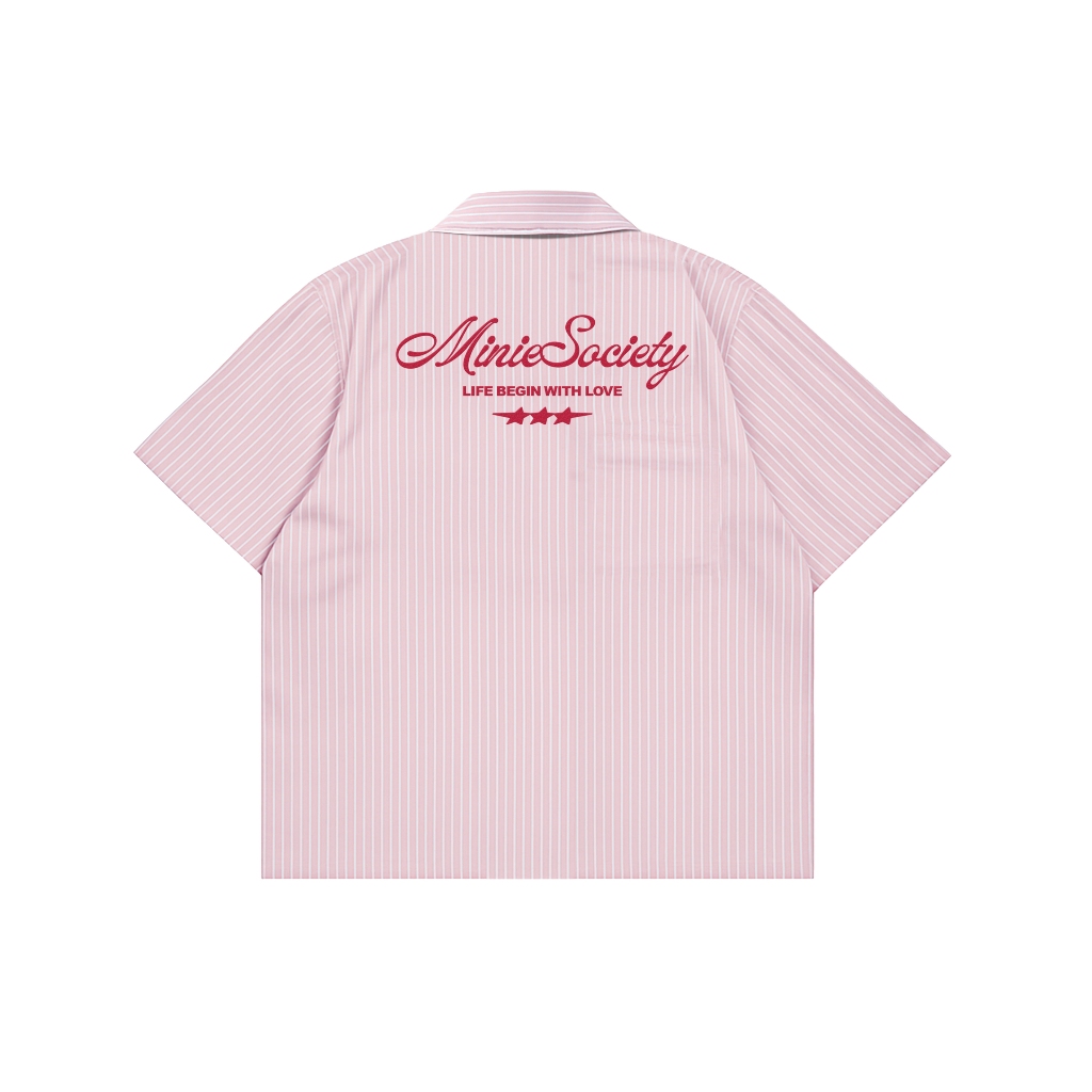 Mnst Shirt | Kemeja Pendek | Boxy | Pink | Stripe Salur | Funny
