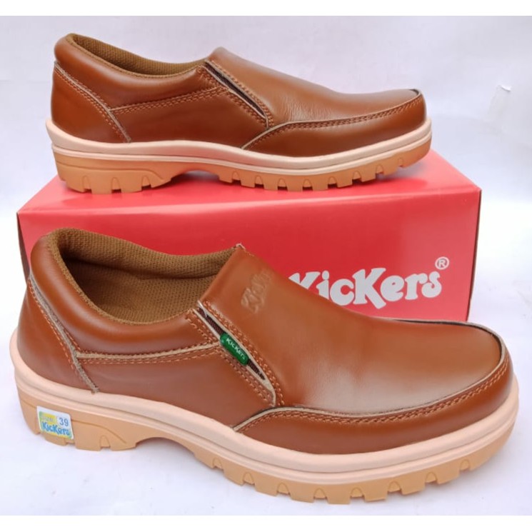 Sepatu kickers kulit pria asli original casual santai kasual slip on tanpa tali terbarumurahselop