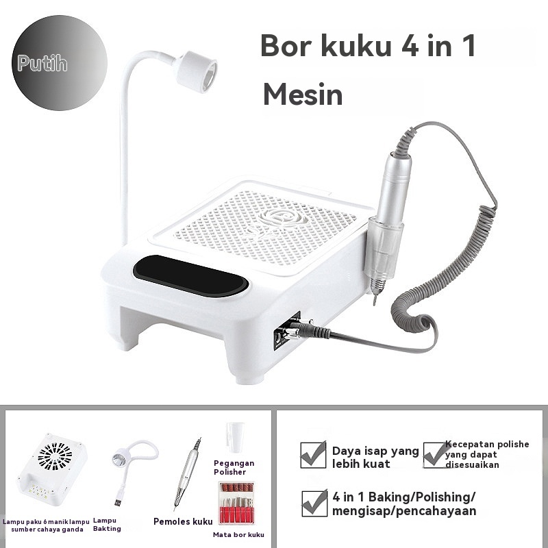 Nail.world Multi-Function 4-in-1 Nail Vacuum Cleaner Suction Nail Drill Machine Led Nail Art And Alat Kikir Kuku Elektri