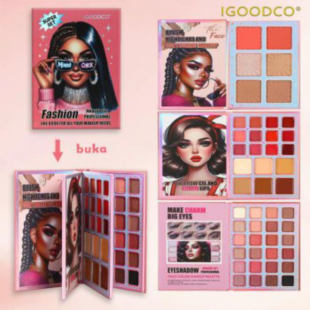 IGOODCO® MIXED & CHICK - 48 Warna Multi-Set Makeup Palette IG3187 – Eyeshadow, Blush, Highlighter, Lip & Eyebrow Cream A