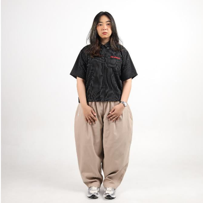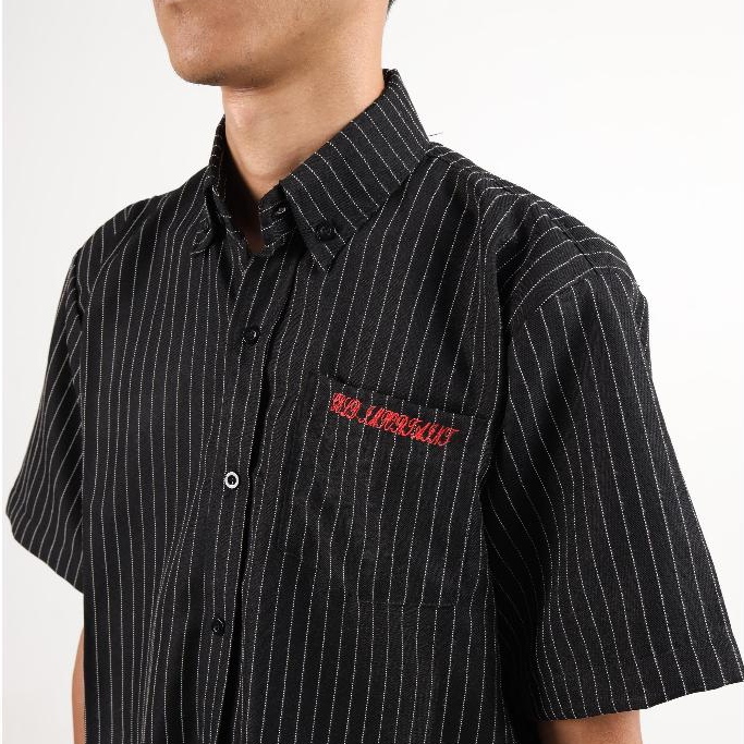 Shirt Boxy Stripe - Geld Importaint | Black Stripe | Kemeja Pendek Stripe Pria Dan Wanita