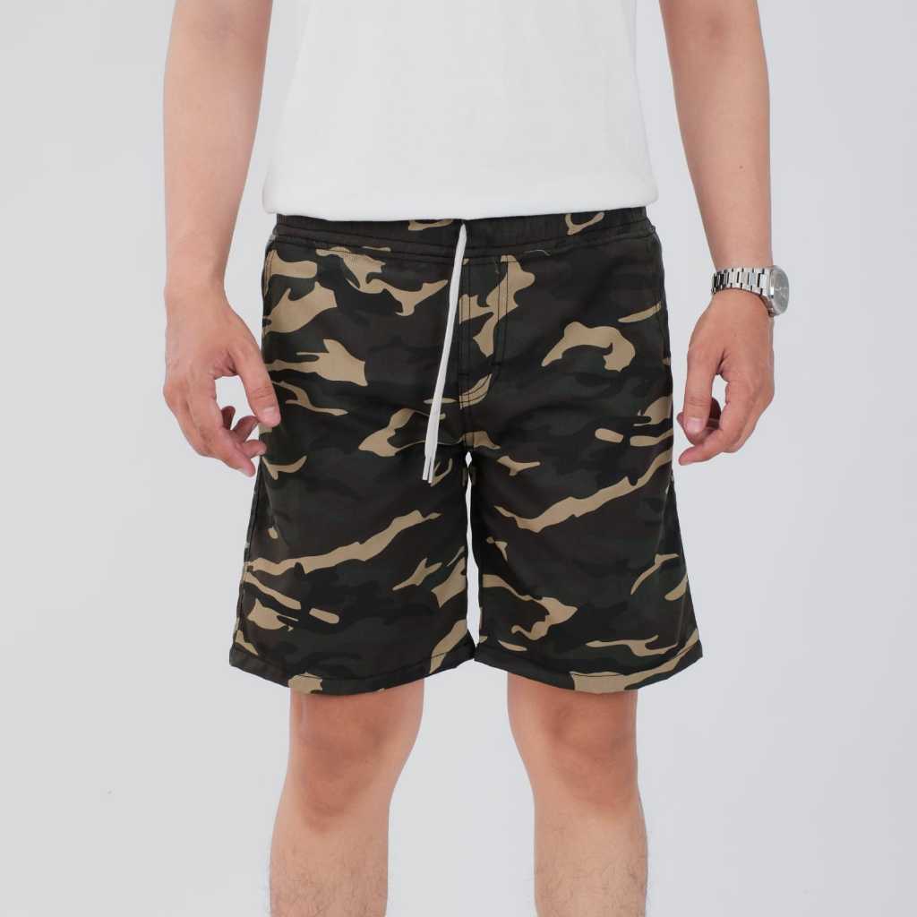 Celana Pendek Loreng Boardshort Pria Kain Katun Tali Serut Elastis Warna Coklat