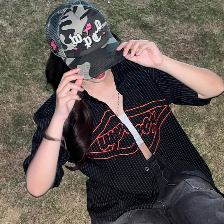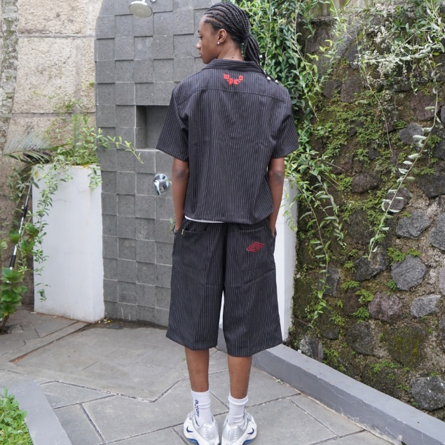WP Company - Kemeja Pendek Boxy Screen Black WorkShirt Stripe Salur