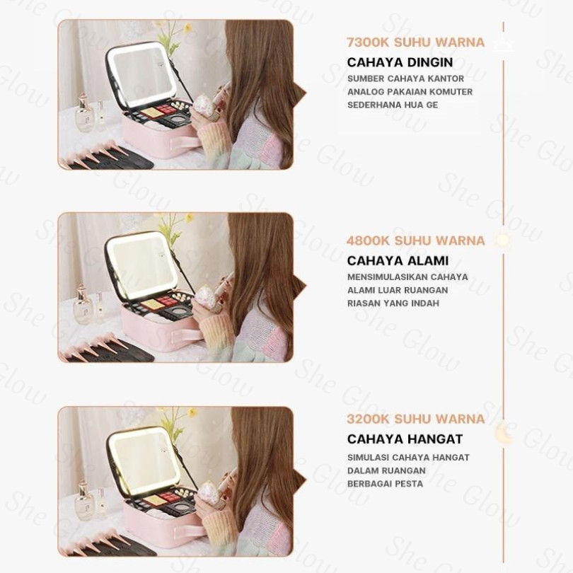 She Glow (GARANSI 1 TAHUN) Tas Makeup Lampu / LED Makeupartist Bag MUA S / L Full Mirror Beauty Case SG