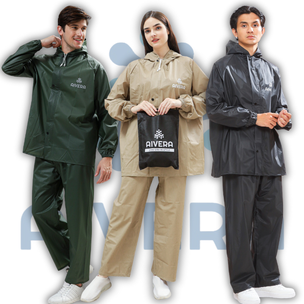 JAS HUJAN MANTEL AIVERA SETELAN Pria & Wanita Basic Colour Anti Rembes Bahan PVC Tebal Sealpress