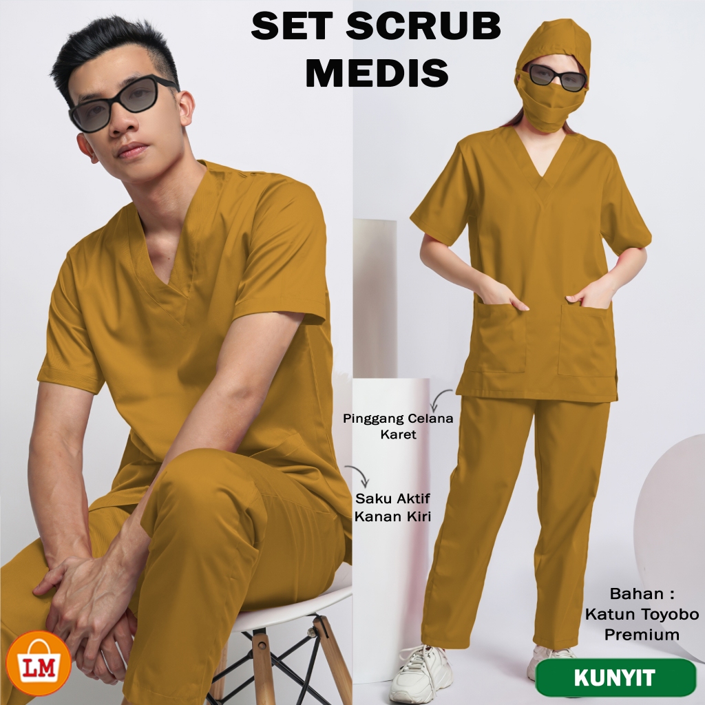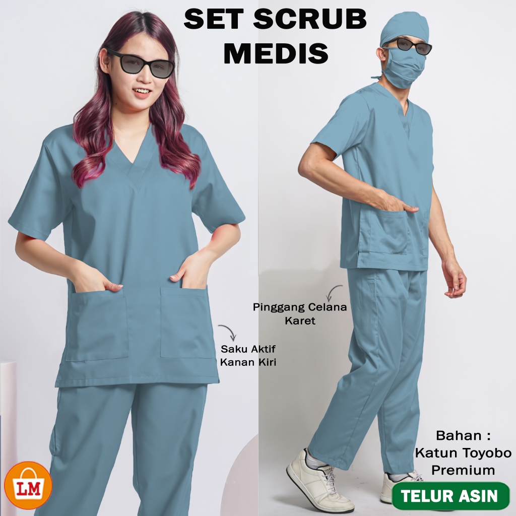 MA Set Baju Scrub Medis - Setelan Seragam Jaga Perawat Dokter Rumah Sakit Lengan Pendek Adem Size M L XL XXL 36380