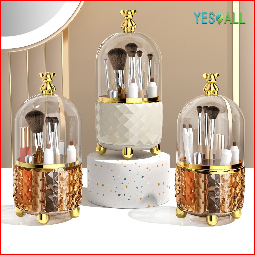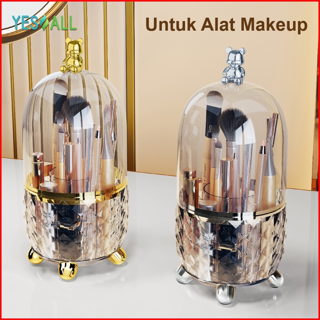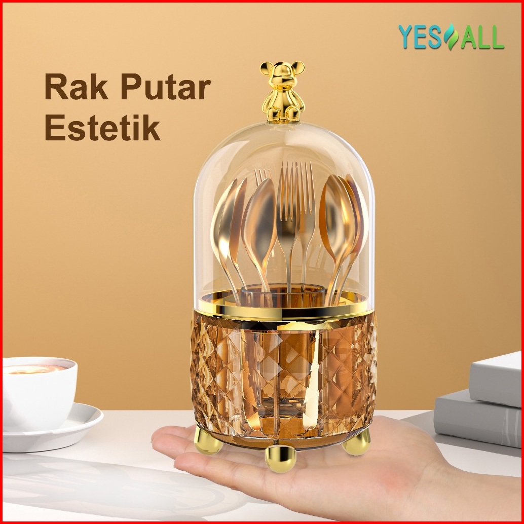 Yesall Rak Kosmetik Makeup Crystal Transparan Aesthetic Rak Kosmetik Putar 360 Derajat Aesthetic Tempat Sendok Garpu Ter