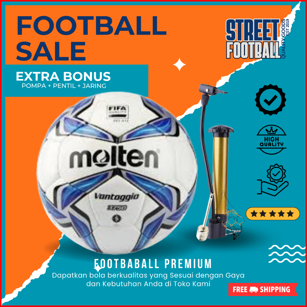 Bola Sepak Molten Vantaggio Size 5 Free Pompa Dan Jaring