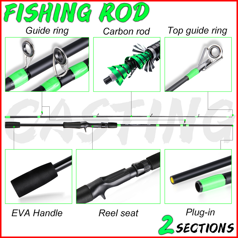 Sougayilang Joran Set Lengkap Joran Casting Set 1.8m 2.1m 2 Sections Carbon Max Drag 10kg 7.2 1