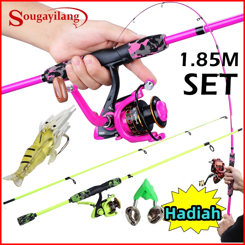 Sougayilang Joran Pancing Set 1.8m 2 Bagian Alat Pancing Berputar Dengan 12 1bb 5.0 1 Reel Pancing Senar Umpan Kait Panc