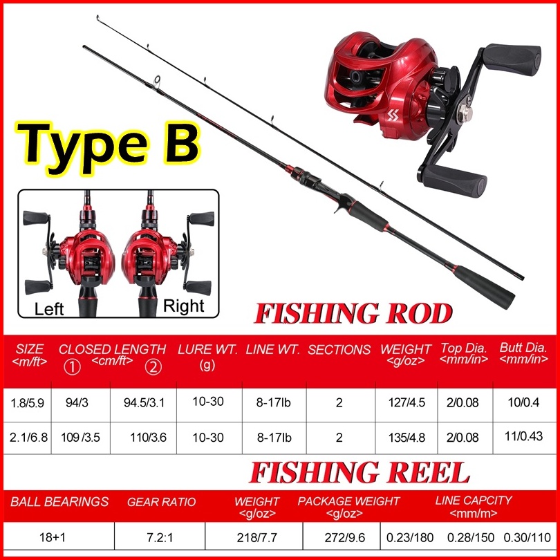 Sougayilang Pancing Set 1.65m 1.8m 2.1m Joran Pancing Carbon Joran Casting Dan Reel Pancing Reel Bc 6-8kg Pancingan Set