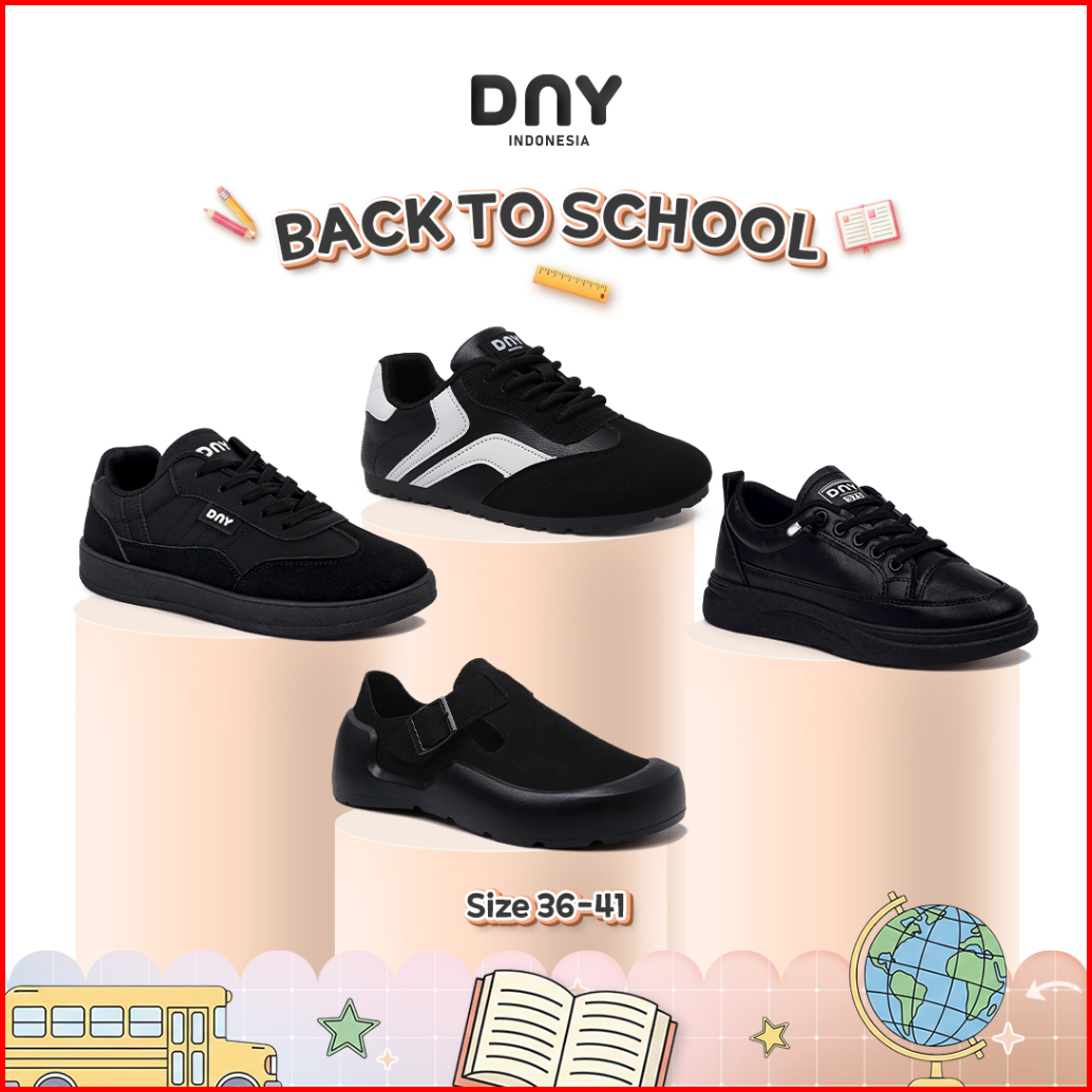 Sepatu Dny Sneakers Hitam Wanita Sepatu Anak Sekolah Black Shoes Cewek Sepatu Back To School 0375