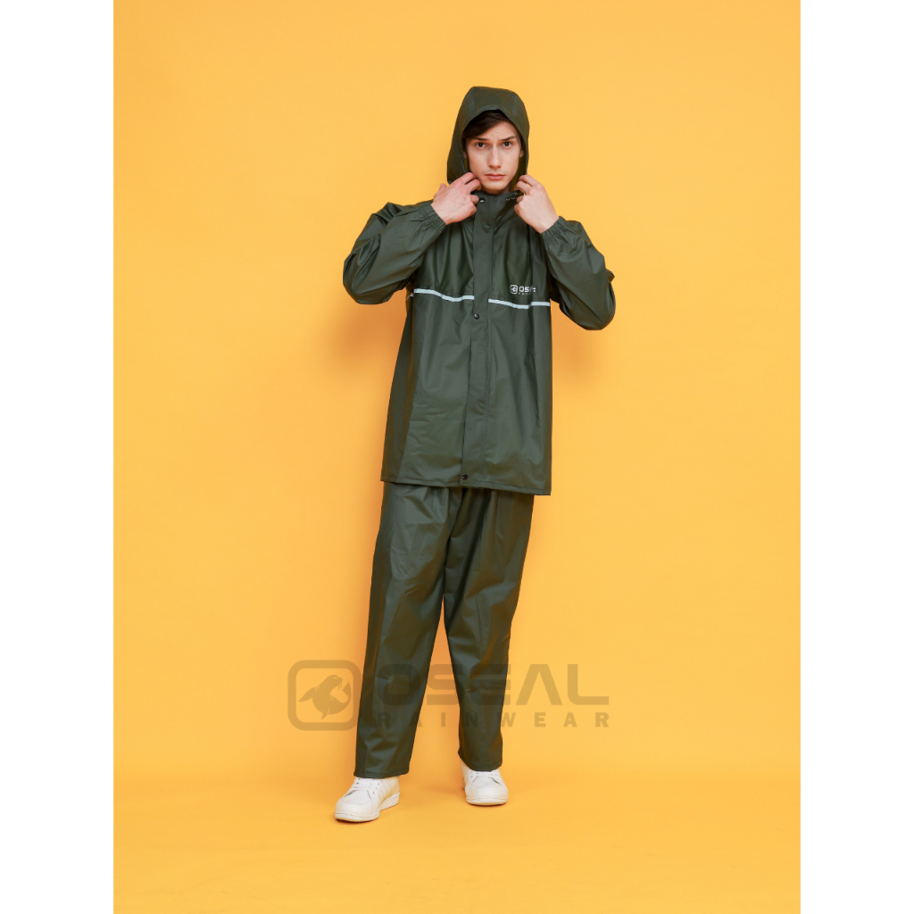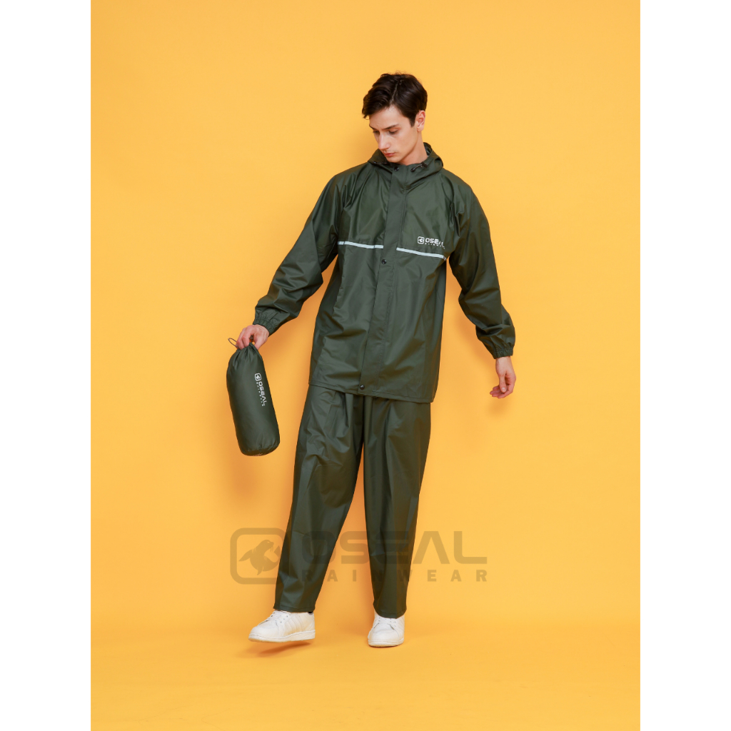 Jas Hujan OSEAL Full Seal Raincoat Mantel Pria Wanita Dewasa Shine Series Hijau