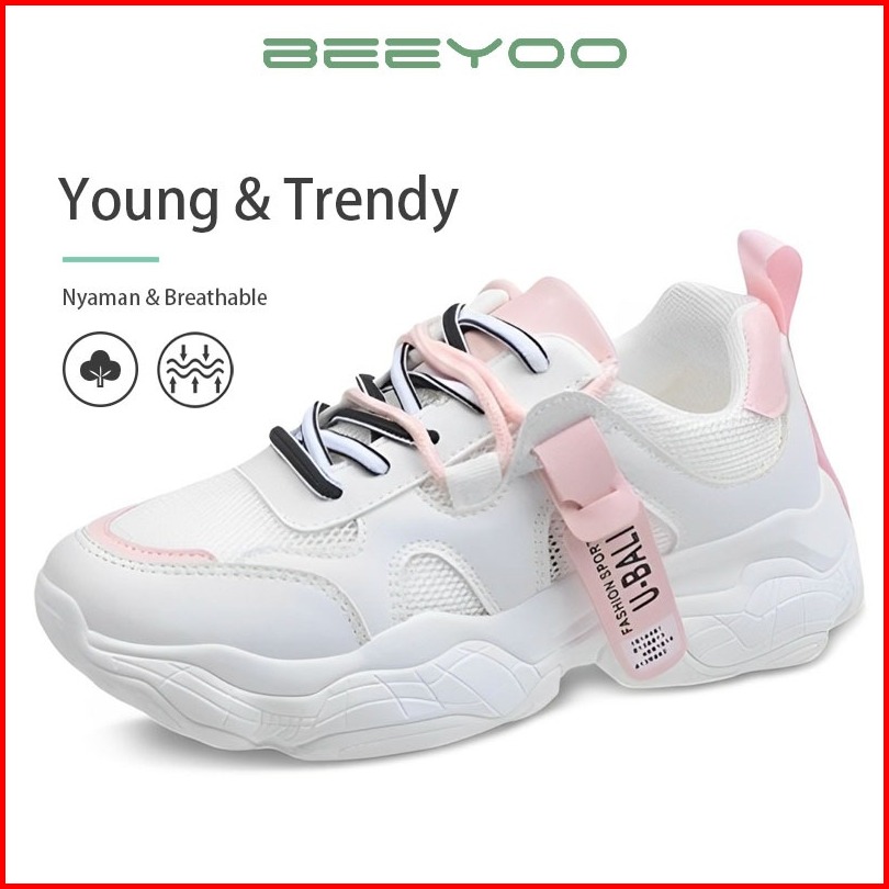Beeyoo Sepatu Sneakers Fashion Wanita Sepatu Kets Tali Fashion Korea Kekinian Wd101