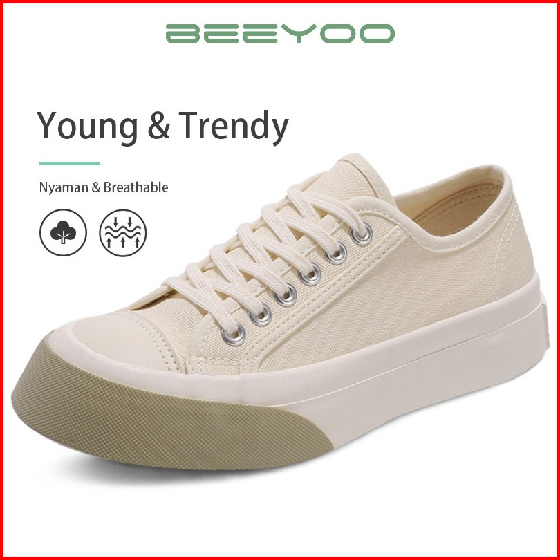 Beeyoo Sepatu Sneakers Kanvas Wanita Korean Style Sepatu Cewek Kekinian Model Tali 35-36 Wk203