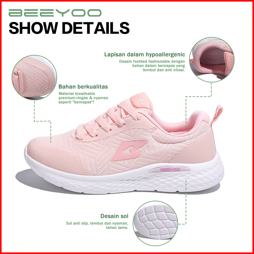 Beeyoo Sepatu Sneakers Casual Sport Sekolah Wanita Dewasa Olahraga Sepatu Cewek Sporty Trendy Lucu Wl102