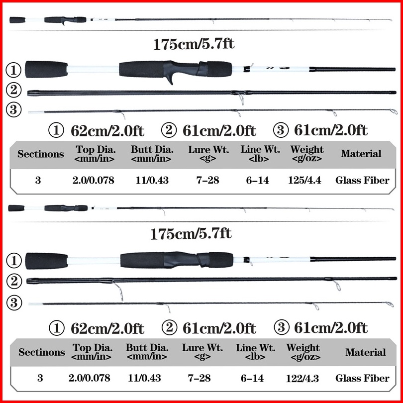 Sougayilang Joran Pancing 2-4 Bagian 1.65m 1.98m Joran Casting Memancing Di Air Tawar Dan Air Asin