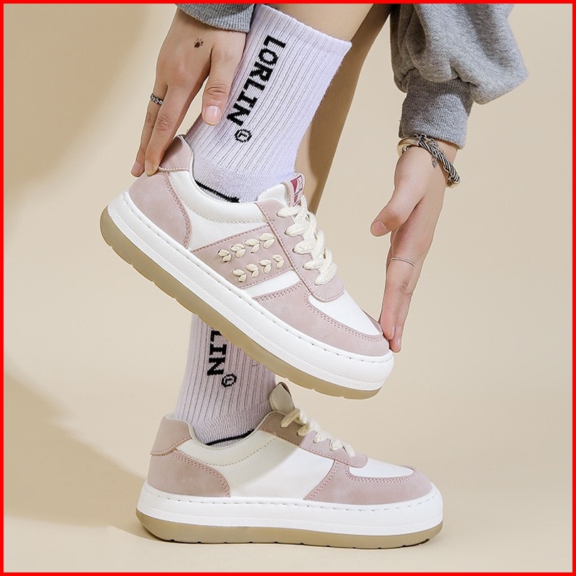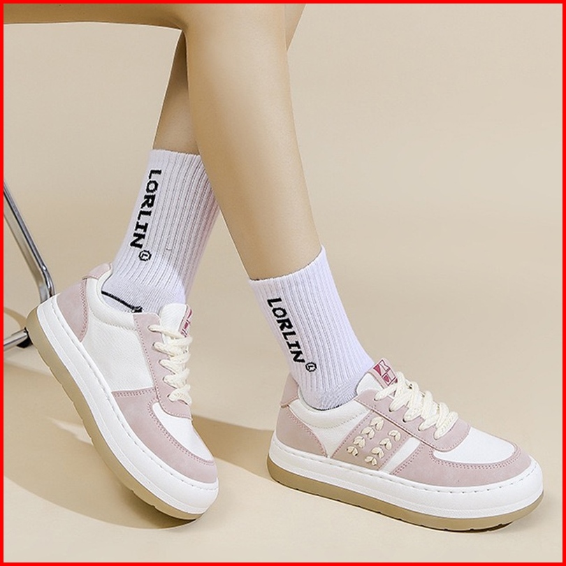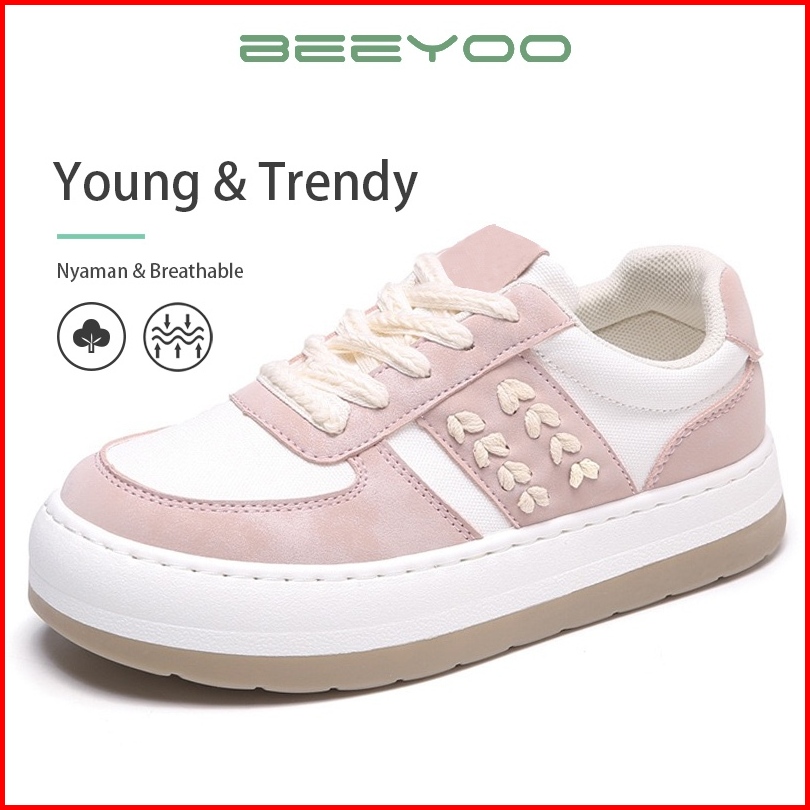 Beeyoo Sepatu Sneakers Tali Simpel Kulit Wanita Sepatu Sneakers Casual Sport Fashion Kekinian Wk134