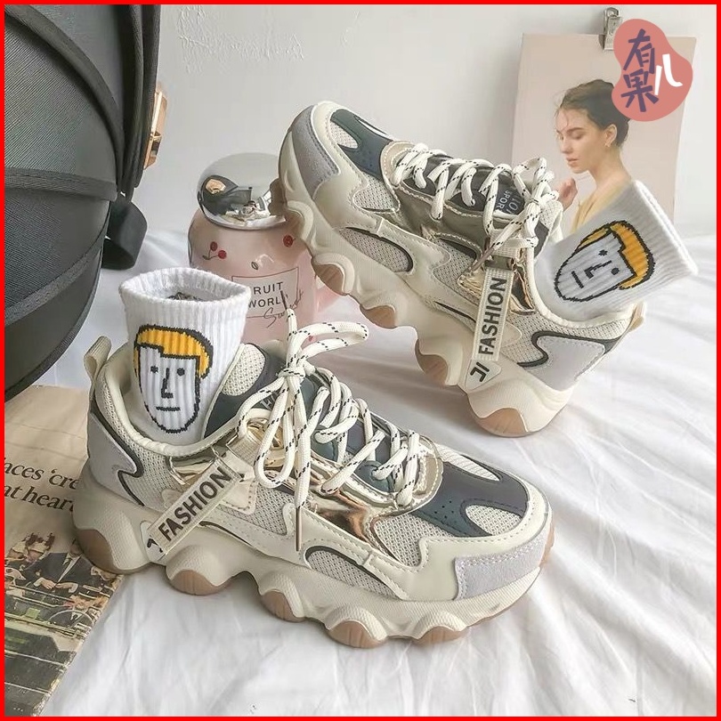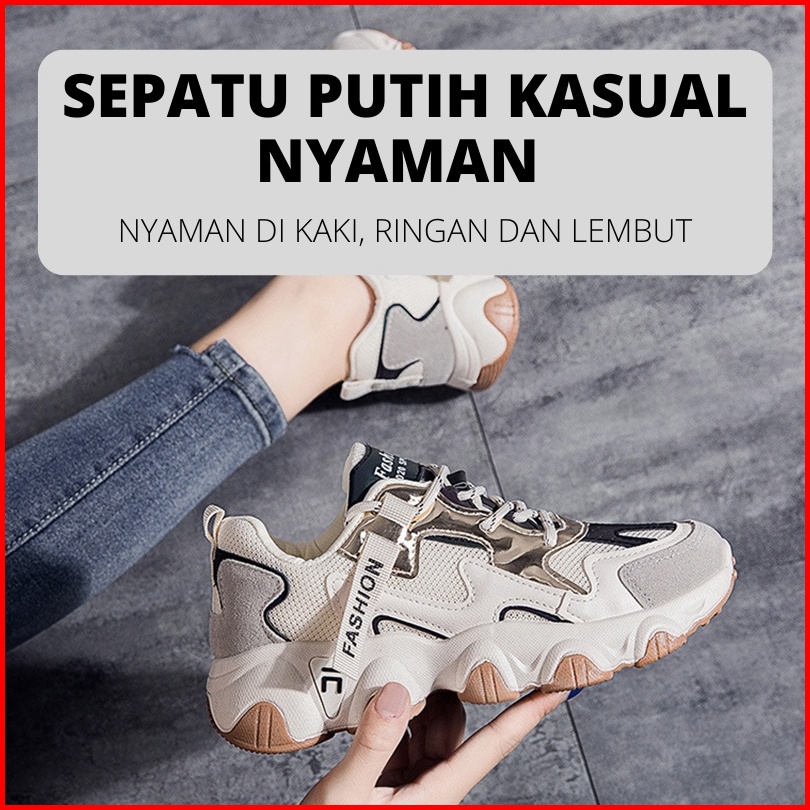 Beeyoo Sepatu Sneakers Wanita Sneakers Korea Kekinian Casual Sport Shoes Cream Wr701