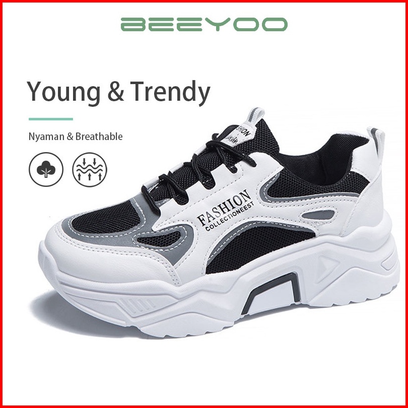 Beeyoo Sepatu Wanita Sneakers Tali Sepatu Olahraga Casual Fashion Kekinian Wd103