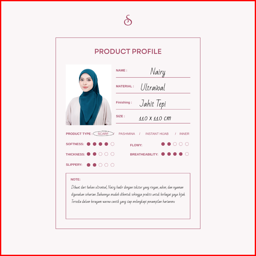 Ansania Hijab - Nairy Ultravoal Jahit Tepi Plat S Kerudung Hijab Segi Empat Polos