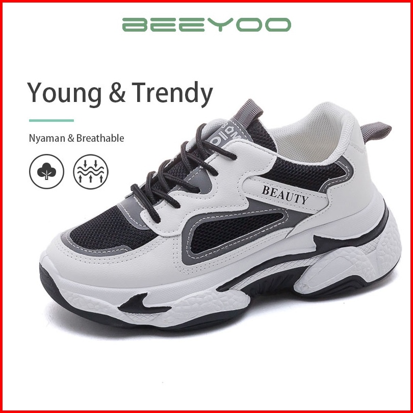 Beeyoo Sepatu Sneakers Tali Wanita Sepatu Cewek Fashion Style Olahraga Casual Wd111
