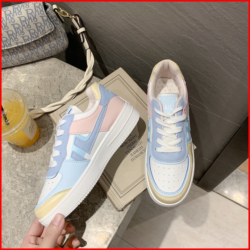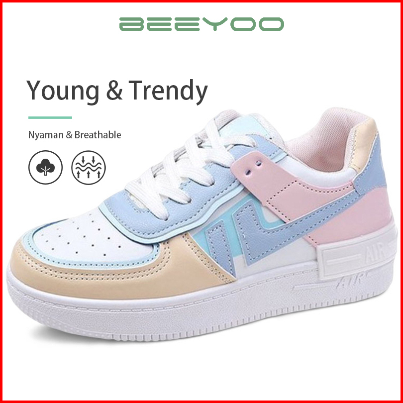 Beeyoo Sepatu Sneakers Wanita Olahraga Wanita Sport Shoes Fashion Wanita Casual Putih Candy Pink Wk109