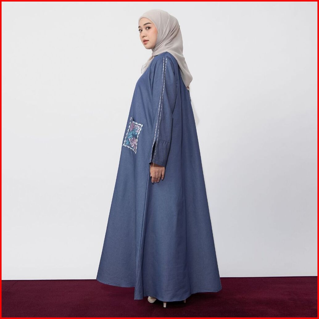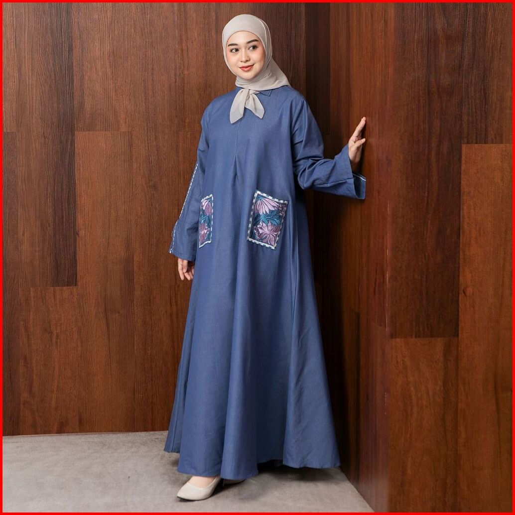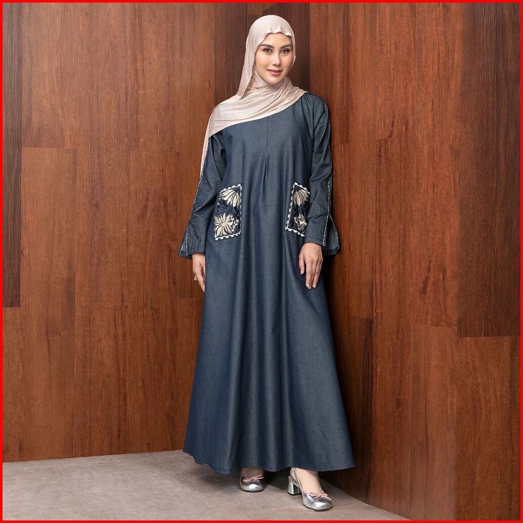 Lozy Hijab - Irish Dress Denim Abaya Dress Flower Embroidery Bahan Denim