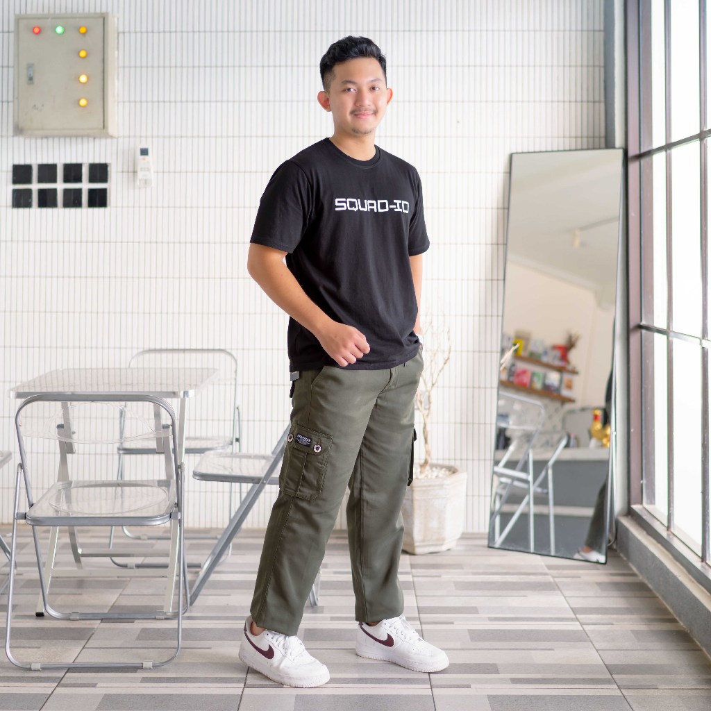SQ SQUAD ID Celana Cargo Loose Long Pants Katun Twill Tebal Pria/wanita Berkualitas