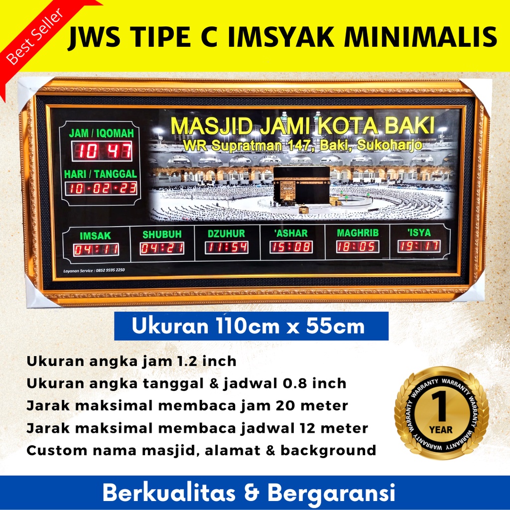 Jam Masjid Jadwal Sholat Digital Tipe C Imsyak Ukrn 110 cm x 55 cm Bisa request nama masjid & Gambar