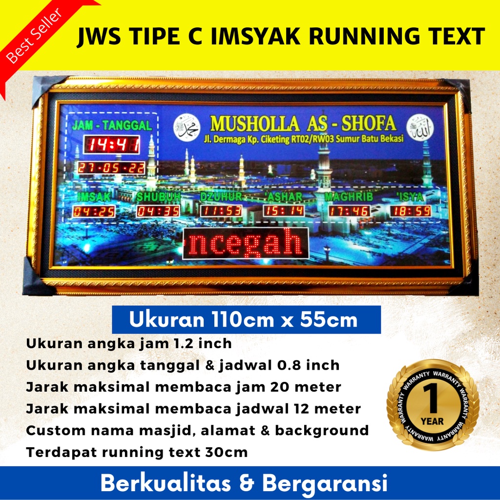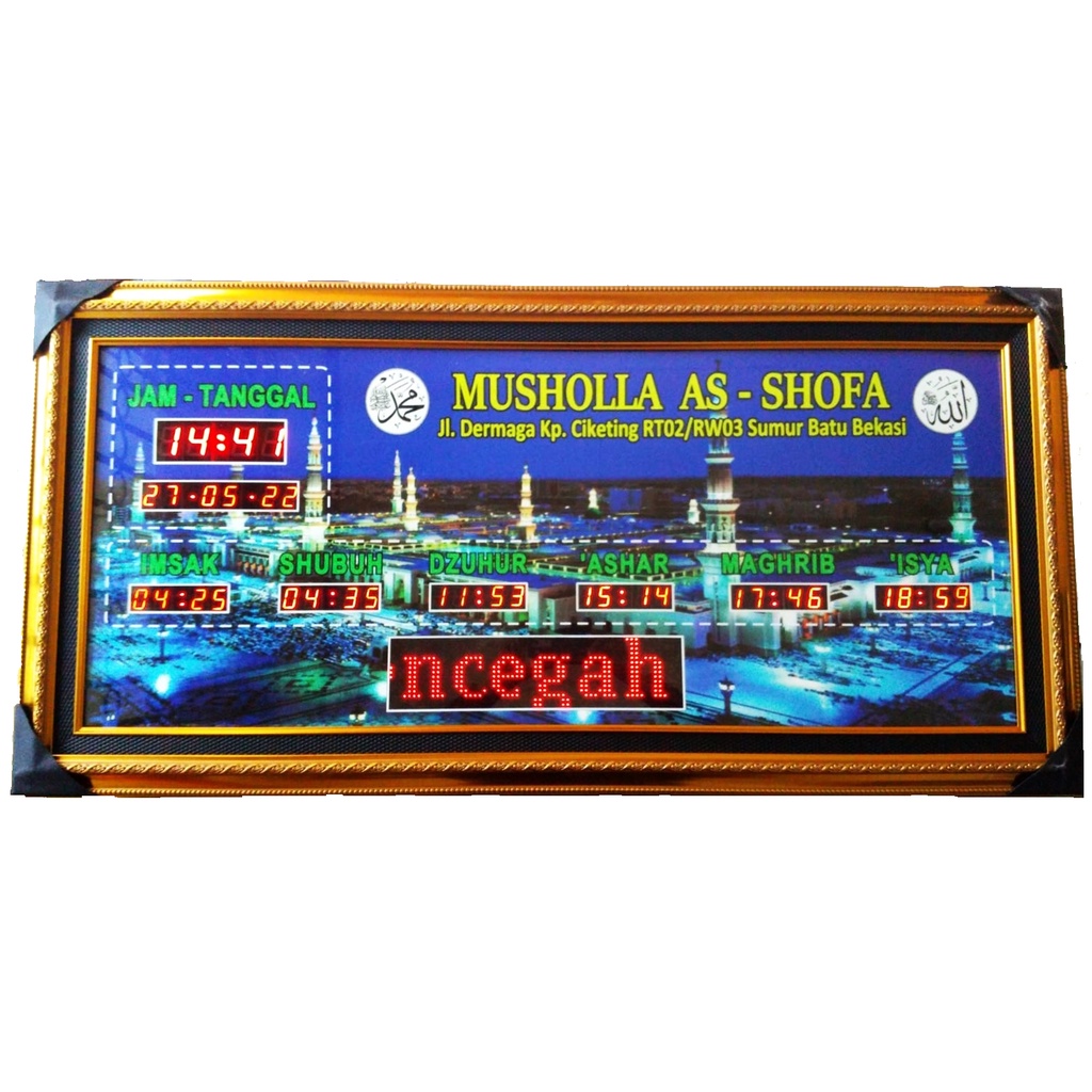 Jam Masjid Jadwal Sholat Digital Ukuran 110 cm x 55 cm Pakai Running Text 30 cm. Bisa Ditambahkan Tulisan Nama Masjid