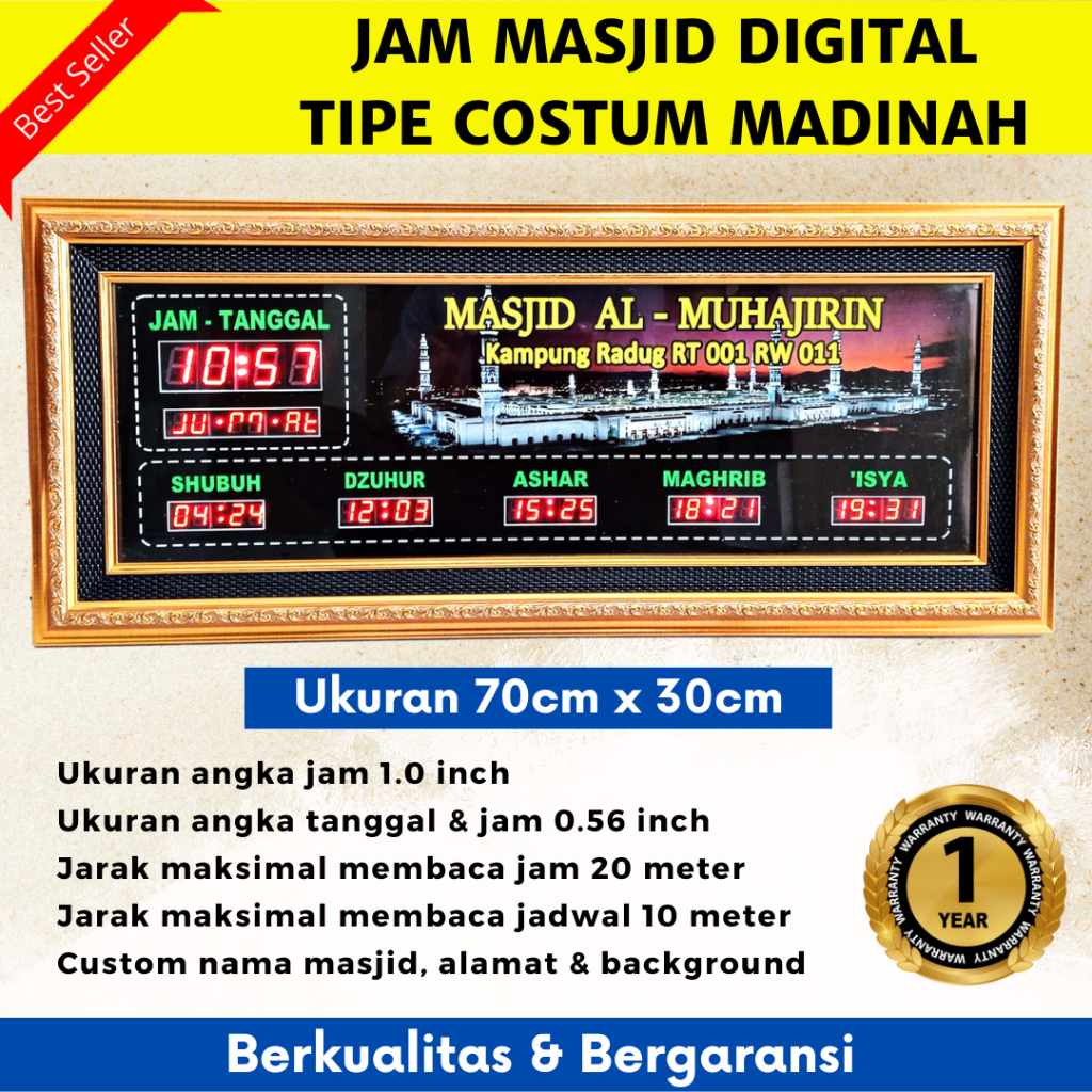Jam Masjid Digital Jadwal Sholat Digital CA Madinah 70 cm X 30 cm Bisa Request Nama Masjid & Gambar