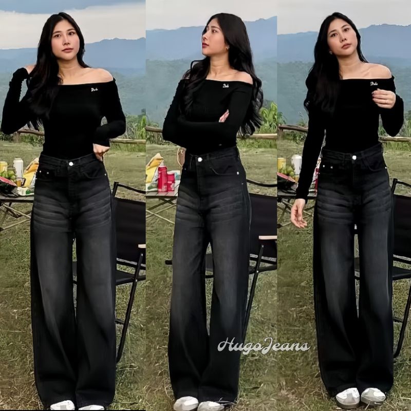[ UNISEX ] Celana Jeans Whisker Gombrong Highwaist Baggy Pants Hangover Wid Leg Oversize Korean Style Terlaris!!