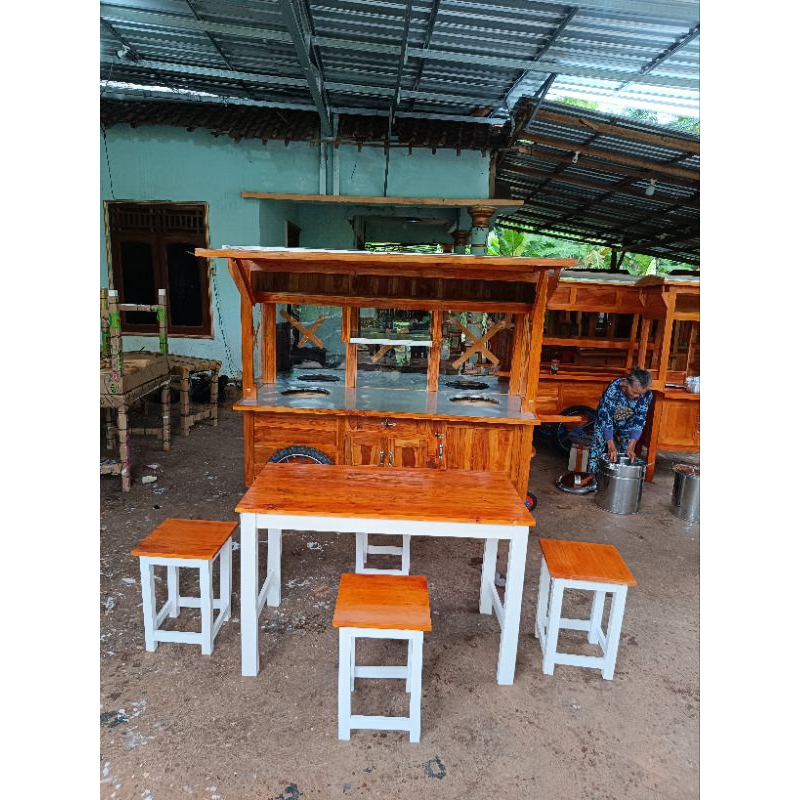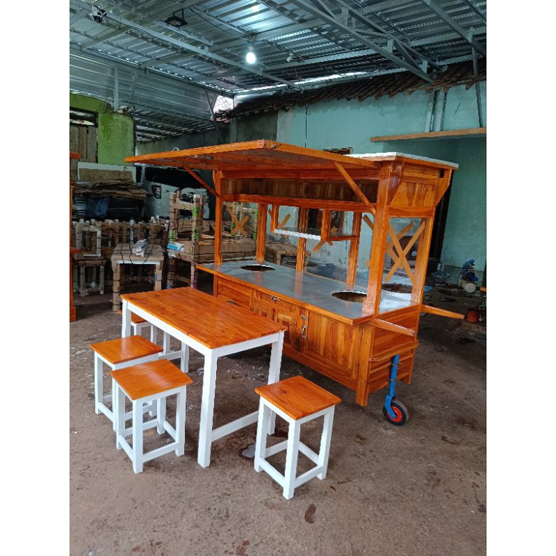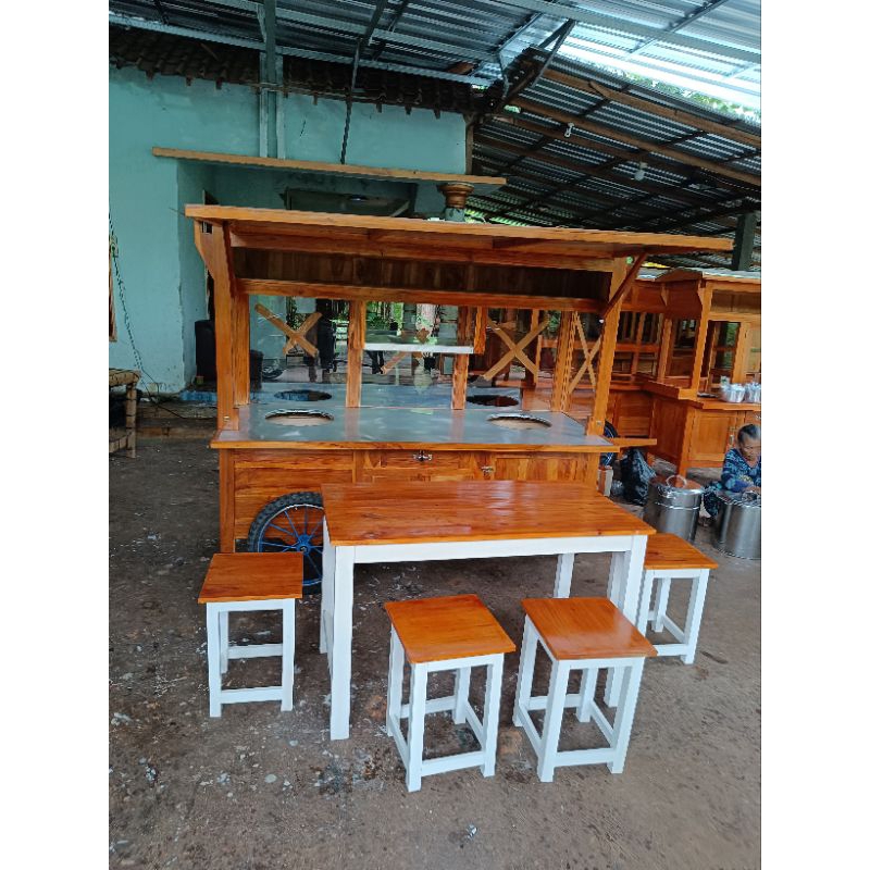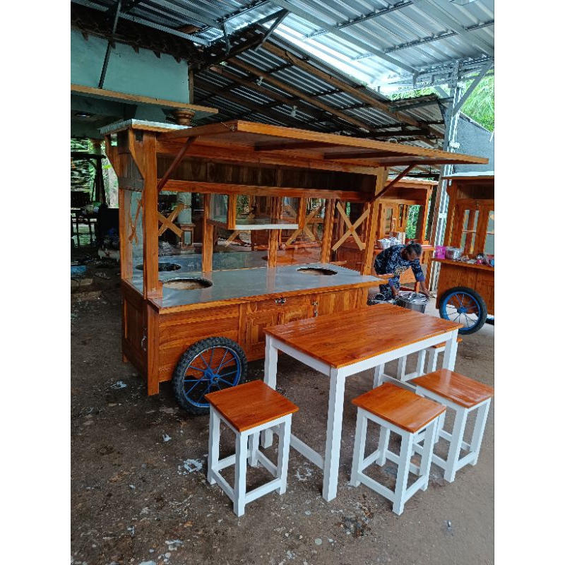 gerobak bubur ayam full kaca roda tiga dan satu set meja kursi free ongkir