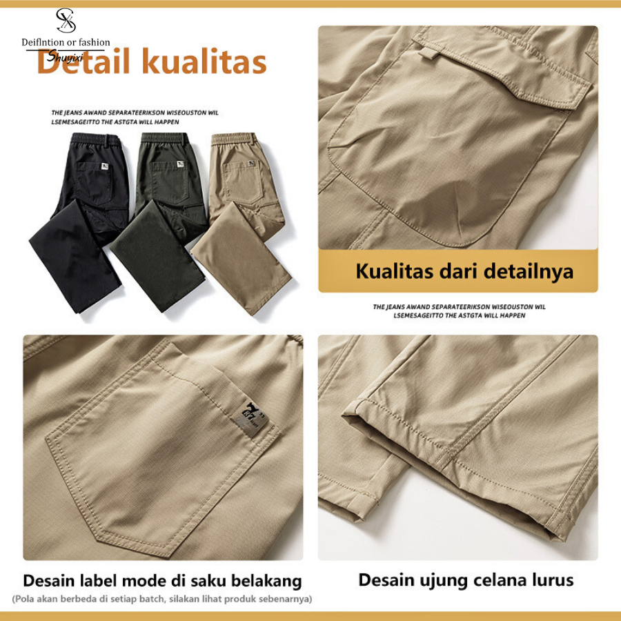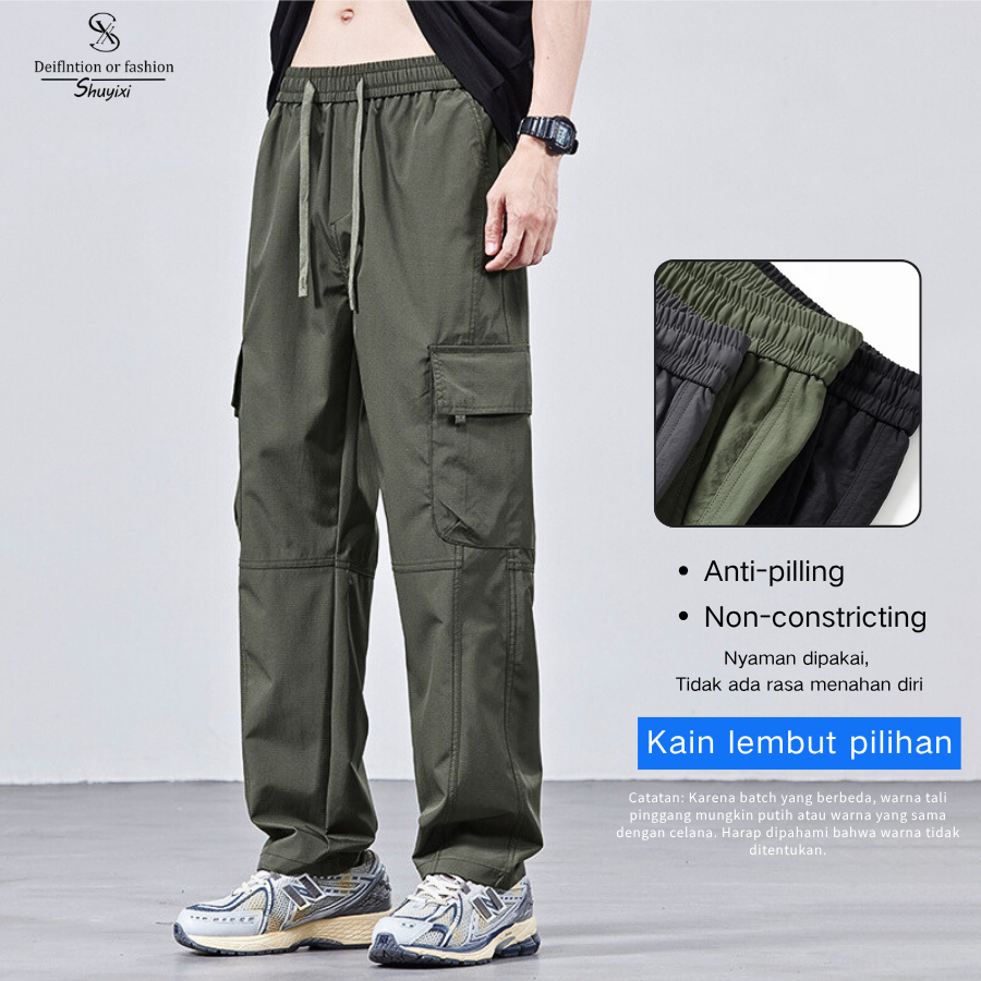 SUYX Celana Cargo Pria Lembut Lurus Celana Panjang Korean Style Oversize Celana door-3 Warna
