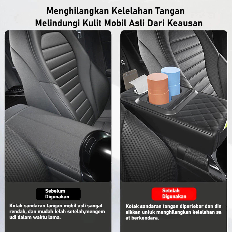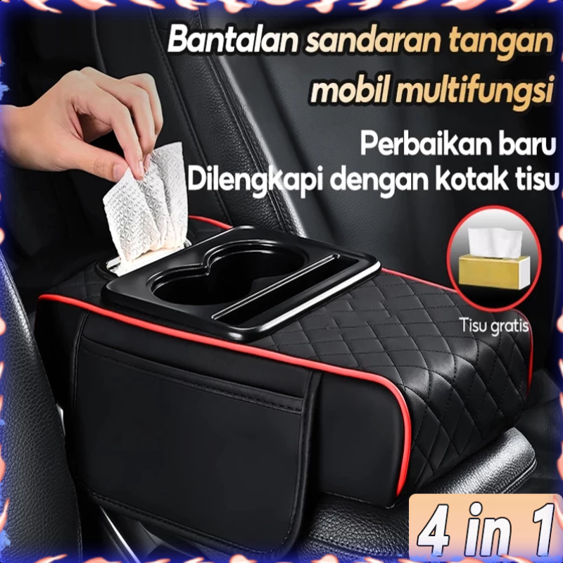 Tempat Botol Mobil 4 In 1 - Sandaran Lengan Pelindung Multifungsi Kotak Tisu Universal Rak Penyimpanan Mobil