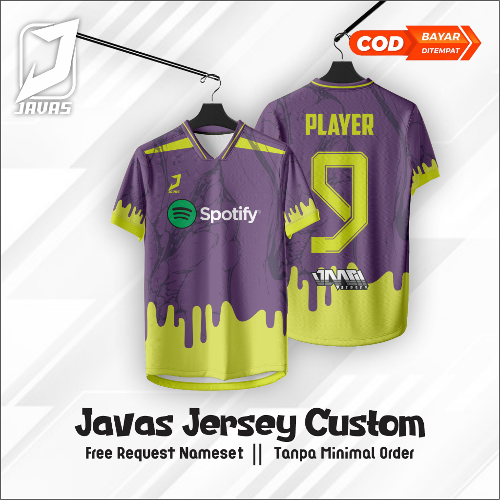 Javas Jersey Futsal Sepak Bola Ungu Stabilo Custom Nama Atribut printing