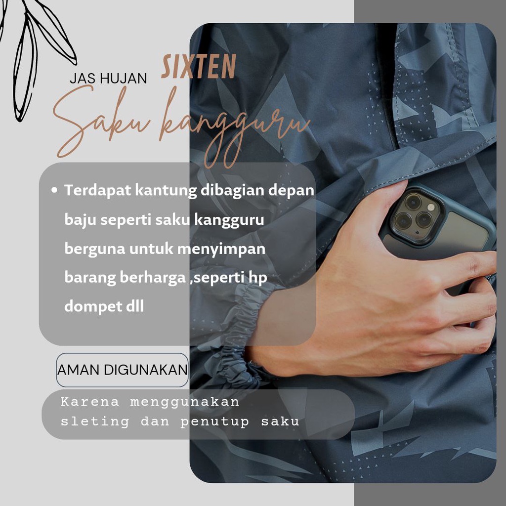 Jas Hujan SIXTEN Jas Hujan Pria Wanita Dewasa Bahan Taslan Saku Kangguru